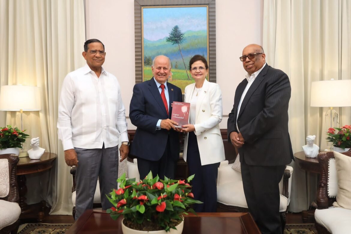 Como parte de la reunión, la Vicepresidenta recibió un ejemplar del libro Capital y Humanidad, de los economistas Jacqueline Boin y José Serulle Ramia, obra que aborda la relación entre desarrollo económico y sostenibilidad humana.