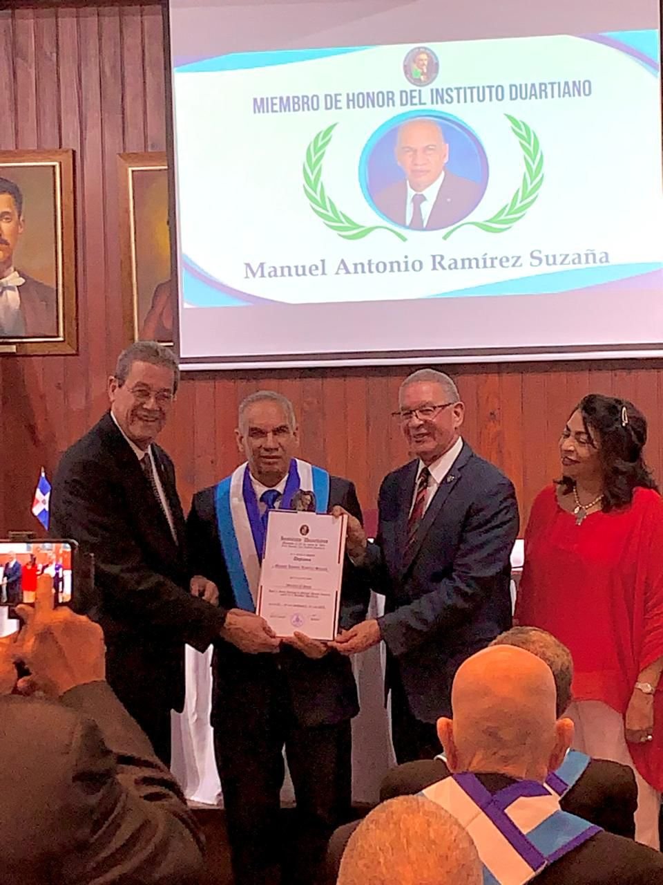 SANTO DOMINGO.- El magistrado Manuel Antonio Ramírez Suzaña, juez presidente de la Cámara Civil, Comercial y de Trabajo de la Corte de Apelación de San Juan de la Maguana, fue juramentado la noche de ayer martes como miembro de honor del Instituto Duartiano, durante un solemne acto celebrado en el auditórium Trinitario Prof. José Joaquín Pérez Saviñón.