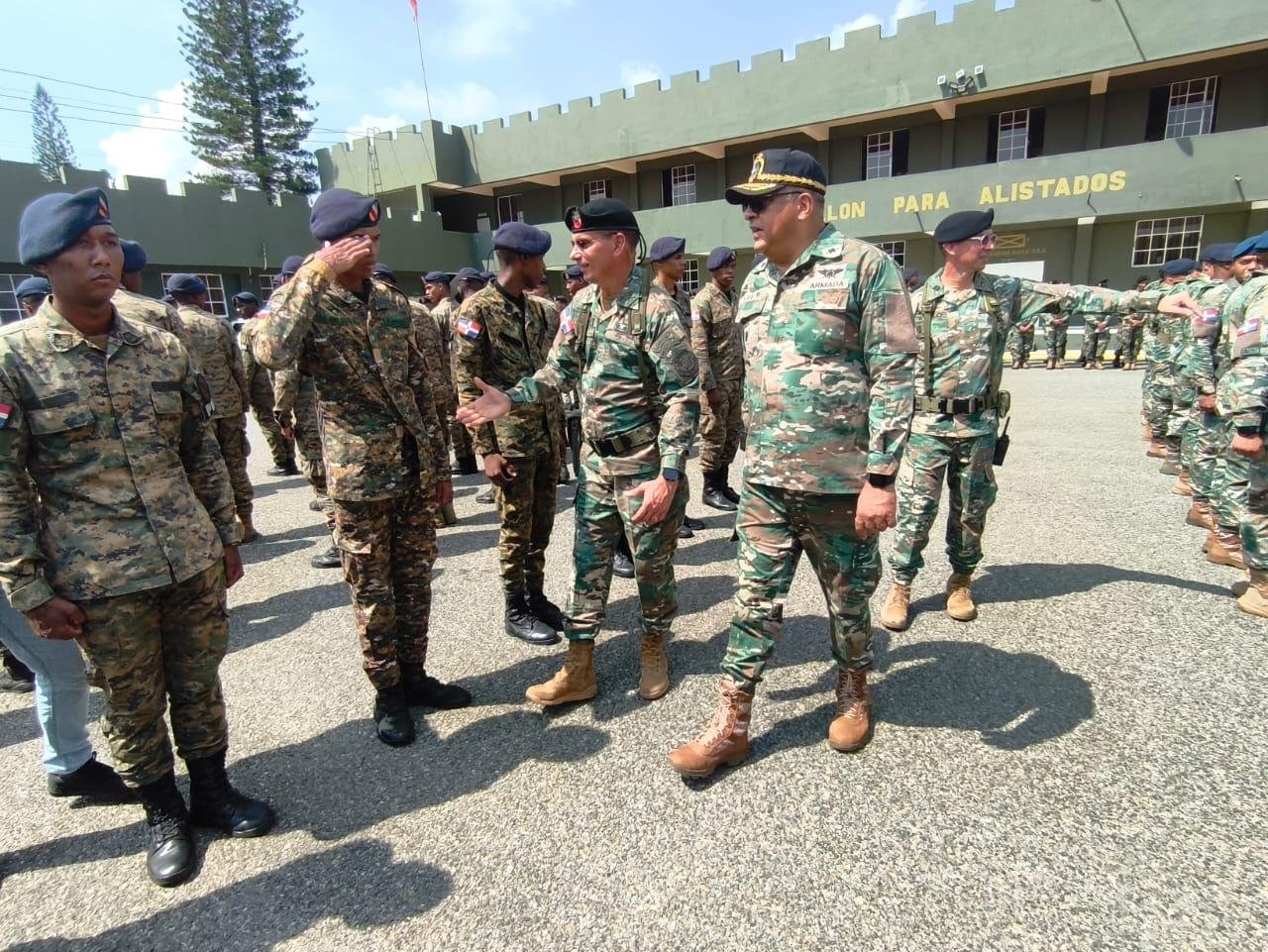 Posteriormente visitó la Fortaleza General de División Fernando Valerio, asiento de la Segunda Brigada de Infantería, donde coincidió con el Vicealmirante Luís Rafael Lee Ballester, ARD, para la revisión de los protocolos utilizados en los operativos que realiza la institución en la zona, en apoyo de la Dirección General de Migración.