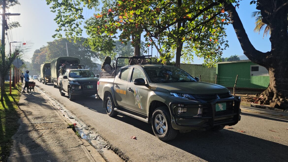 Este jueves, la zona fronteriza de Elías Piña despertó con una fuerte presencia militar. Durante la mañana, se observó un inusual convoy militar y aeronaves sobrevolando toda la línea limítrofe, así como las principales calles del municipio Comendador, en la provincia de Elías Piña.