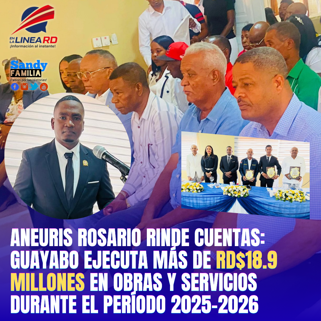 Guayabo, San Juan.– El director del distrito municipal de Guayabo, Aneuris Rosario, presentó su rendición de cuentas correspondiente al período fiscal 2025-2026, destacando ingresos por más de RD$18.8 millones, inversiones en infraestructura comunitaria y programas sociales, así como avances en obras clave para la localidad.